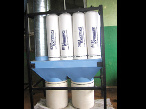 Dust Dynamics Fine filtration systems generally restrict the release of particles above the size of 5microns the ambient. They are often installed downstream of a cyclone. However, they can be in isolation for small sized particles. These systems are sized according to the Volumetric flowrate.
