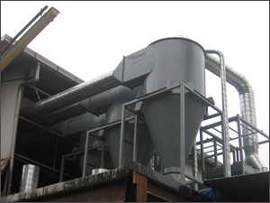 ![]() ![]() System with Blower/Cyclone/Fine Filtration unit integrated with the Wood Saw Dust Fire Chamber. The cyclone is designed so as to have a suitable under-flow thereby using part of Blower Air to provide extra oxygen to burn collected saw dust almost instantaneously.